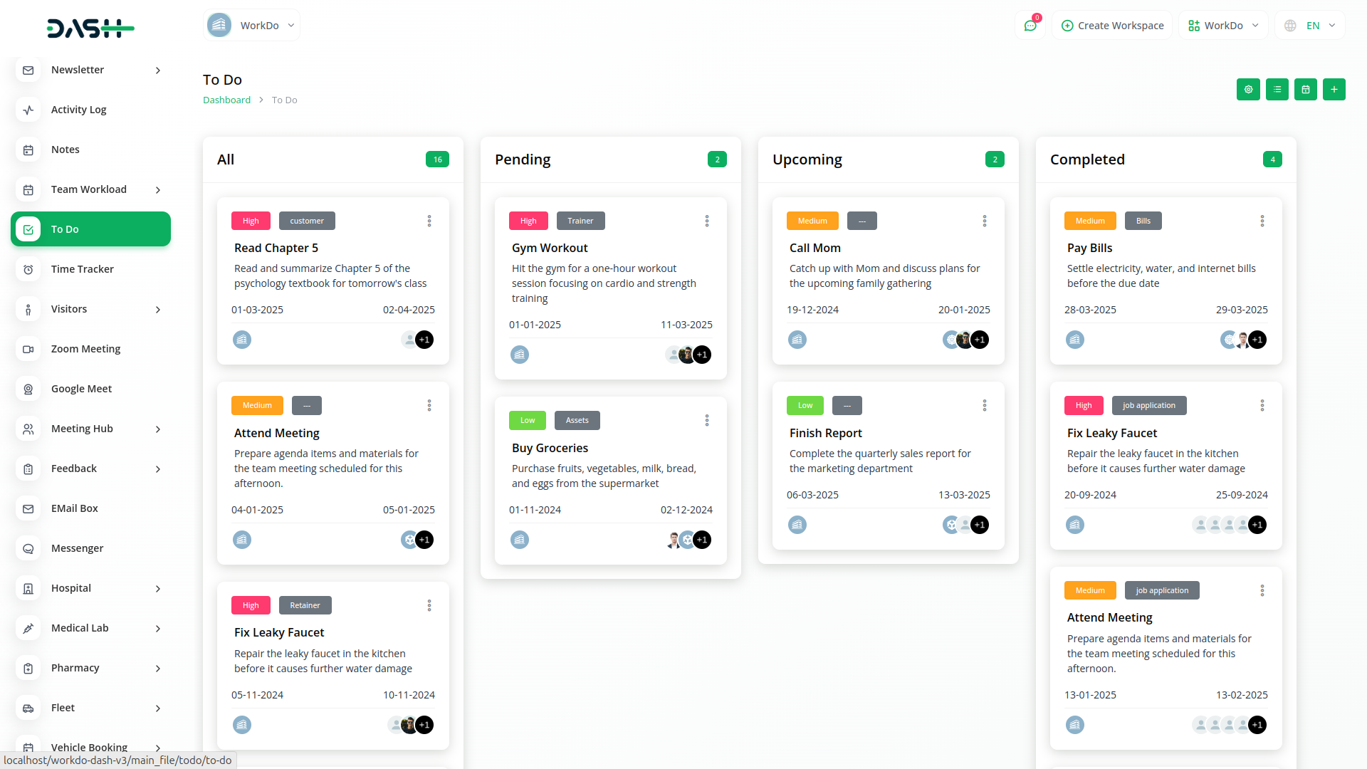 Effortlessly manage task stages, meetings, and personal ToDo lists within Dash SaaS, streamlining your workflow for enhanced productivity and organization.